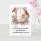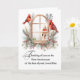 Une carte de souvenir chaleureuse montrant des cardinaux rouge vif sur une fenêtre d'hiver gelée encadrée de saints et à feuillage persistant. Créé pour le premier anniversaire de la perte d'un être cher, ce design reconnaît le chagrin tout en offrant la paix, le soutien et le souvenir.