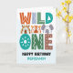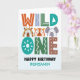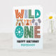 Première Anniversaire Wild One Birthday Card. Design caractéristiques typographie script wild one, animaux sauvages jungle, joyeux anniversaire et un nom. Parfait pour le premier anniversaire.