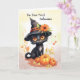 Un tout premier Halloween est si spécial ! Envoyez cette carte chaleureuse pour célébrer avec cet adorable chat noir aux yeux enchanteurs. Il porte un casquette noir avec une marguerite orange. Les pins sont aux pieds de ce mignon chat. Profitez de la magie de la saison en fêtant un tout premier Halloween ! Purr-fect pour un petit garçon ou une petite fille !