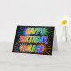 This multicolored and fun birthday greeting card desobjets the message "HAPPY BIRTHDAY," and the common first name "AMBER" with the letters having a ful rainbow spectrum like gradient coloring pattern. La background des objets a colorful pattern inspecred by the appearance of bursting celebratory fireworks. The inside feobjets a custom greeting message, or could perhaps be cleared and left blank if a message is to be written by hand instead. A greeting card like this could be a fun way to acknowledge the birthday of somebody named Amber. 2