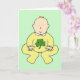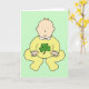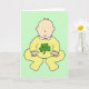 Un mignon bébé caricaturiste en tenue de citron avec un shamrock à l'avant contre un arrière - plan vert plat.