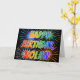 Ce design amusant, vibrant et multicolore de cartes de voeux d'anniversaire comprend le message "HAPPY BANTHDAY", et le prénom commun "NOLAN" avec les lettres ayant un spectre arc-en-ciel coloré comme motif de couleur dégradé. L'arrière - plan du devant présente également un motif coloré inspiré par l'allure d'un feu d'artifice festif. L'intérieur comporte un message de salutation customisé, ou peut-être pourrait-il être effacé et laissé vide si un message doit être écrit à la main à la place. Une telle carte de voeux pourrait être une façon amusante de célébrer l'anniversaire de quelqu'un du nom de Nolan. [~Z0000350]