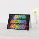 Ce design amusant, vibrant et multicolore de cartes de voeux d'anniversaire comprend le message "HAPPY BANTHDAY", et le prénom commun "RONALD" avec les lettres ayant un spectre arc-en-ciel coloré comme motif de couleur dégradé. L'arrière - plan du devant présente également un motif coloré inspiré par les feux d'artifice. L'intérieur comporte un message d'accueil personnalisé, ou pourrait être effacé et laissé vide si un message doit être écrit à la main à la place. Cela pourrait être une façon amusante de reconnaître l'anniversaire de quelqu'un nommé Ronald. [~Z0000350]