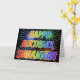 Ce design amusant, vibrant et multicolore de cartes de voeux d'anniversaire comprend le message "HAPPY BANTHDAY", et le prénom commun "SAVANNAH" avec les lettres ayant un spectre arc-en-ciel coloré comme motif de couleur dégradé. L'arrière - plan du devant présente également un motif coloré inspiré par l'allure d'un feu d'artifice festif. L'intérieur comporte un message de salutation personnalisé, ou peut-être pourrait-il être effacé et laissé vide si un message doit être écrit à la main à la place. Une telle carte de voeux pourrait être une façon amusante de célébrer l'anniversaire de quelqu'un du nom de Savannah. [~Z0000350]
