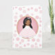Ce design présente une mignonne princesse afro-américaine avec une robe rose, une couronne et des gants sur un fond à pois rose super mignon.