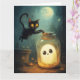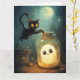 Scène de Halloween avec fantôme et chat noir.