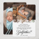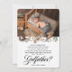 Élégant Serez-vous ma carte de proposition de parrain. Design dispose de 2 photos du bébé à l'intérieur d'un cadre floral élégant et votre message.