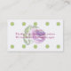 Ce devant carte de visite standard est doté d'un rose d'aquarelle violet et d'une opacité réduite sur le dos. Il est conçu comme une carte punch de fidélité aux petites entreprises. Les cercles de punch sur le dos correspondent aux couleurs du rose avec un message de gratitude. Remplissez les champs du modèle avec vos informations pour l'avant et l'arrière, SUPPRIMEZ tout texte ou cliquez sur personnaliser pour sélectionner le style, la taille et la couleur de la police que vous préférez.