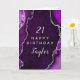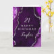 Cette carte d'anniversaire élégante et glamour peut être personnalisée avec un nom ou un titre comme maman, fille, petite-fille, nièce, ami etc. Le design est composé d'un arrière - plan en marbre d'agate violet avec des accents de parties scintillant en faux argent. Le texte combine écriture manuscrite et polices sans serif modernes pour un look élégant et sophistiqué.