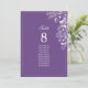 Guide your guests with elegance using this purple floral wedding seating chart card, featuring delicate white botanical artwork and a refined table number layout. This double-sided design offers both a beautifully decorated front and a coordinating floral back, creating a cohesive and polished look for your reception décor.