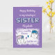 Personnalisez cette carte d'anniversaire pour votre merveilleuse soeur, qui est complètement fabuleuse, comme vous ! Conçu en violet, lilas et bleu, avec deux "visages de fille" et coeurs" Ajouter son nom et changer le texte pour convenir.