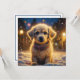 Chien chiot mignon dehors sur une carte de Noël personnalisée et enneigée nuit.