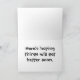 La carte représente un "faux" motocycliste, tête première dans un tas de paille avec sa moto à côté. Le texte à l'intérieur dit : "Espérons que les choses s'améliorent bientôt". Tout le texte avant et intérieur est personnalisable à vos propres mots.
