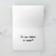 Le fantôme blanc sur un fond noir pose une question très importante : "Ce qui a fait un fantôme dites à l'autre fantôme ?" À l'intérieur de la carte il répond avec : "Vous croyez en personnes ?"