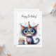 Carte Quirky Whimsical Cat Party Hat Cake Birthday