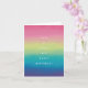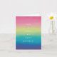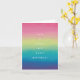 Il s'agit d'une carte d'anniversaire dynamique et joyeuse. Il dispose d'un arrière - plan saisissant avec un gradient arc-en-ciel lisse et horizontal qui s'étend sur toute la hauteur de la carte. Les couleurs se fondent harmonieusement d'un rose/magenta brillant en haut, passant par le jaune-vert au milieu, et se terminant par un turquoise/bleu riche et un violet profond au fond. Le dégradé est doux, presque aquarelle ou brossé. L'ensemble est moderne, optimiste et parfait pour célébrer n'importe qui.
