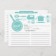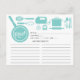 Cartes de recettes de cuisine contemporaine Fête des mariées avec une police de caractères stylisée à la main avec poêle à frire, whisk, spatule, mélangeur à main, pot, broches à rouler et ustensiles. L'avant de notre carte de recettes offre de la place pour un titre de recette, les portions, le temps de préparation et l'espace total temps et ingrédients. Retournez les directions de la carte de recette. Visitez notre boutique pour les invitations assorties à la douche nuptiale Disponible dans notre boutique dans un large assortiment de couleurs wedding showers populaires. Insérez parfait nuptiale invitation pour un stock la douche nuptiale cuisine.