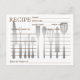 Carte aux lignes brunes, rayures placées sur la surface blanche avec recette rétro arrière - plan personnalisée sur la carte postale avant. Il est customisé avec votre initiale et votre nom.