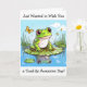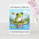 Carte d'amitié mignonne. Enregistrez-vous sur un ami avec cette jolie carte à thème grenouille. Un mignon crapaud assis sur un tapis de lis avec un papillon. Cette carte est pleine de grenouilles mignonnes et de puns de crapaud.