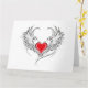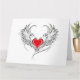 Coeur rouge peint de façon artistique avec ailes d'ange gris, décoré de contour lisse noir.