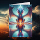 Carte anniversaire pour lui. Illustration d'un dragon regardant son reflet dans l'eau. Grande carte d'anniversaire pour quelqu'un qui aime le mystère, la science-fiction et l'art d'imaginaire.