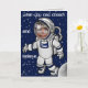 Téléchargez votre propre photo pour remplacer le visage à l'intérieur du costume pour créer une carte d'anniversaire merveilleusement personnalisée pour cette personne spéciale. Grande carte d'anniversaire pour l'enfant (ou l'adulte !) qui s'intéresse à l'espace extra-atmosphérique, aux fusées, aux voyages dans l'espace - ou qui a n'importe quel rêve que vous aimeriez encourager ou inspirer à travailler pour eux. Voir aussi T-Shirt correspondant!