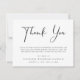 Une carte de remerciement de funérailles et de mémorial élégante et classique avec « Merci » dans un script contemporain et votre message de remerciement et le nom de votre proche dans une typographie simple.