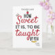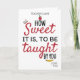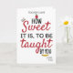 Carte de remerciement pour professeur de l'école CUSTOM pour la Saint-Valentin et la Journée des enseignants - "C'est tellement doux d'être enseigné par vous" avec un livre qui vole, une pomme et un crayon.