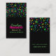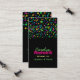 Un carte de visite de réseautage de maman coloré, fait dans un style vertical, avec un arrière - plan noir. Graphiques de confettis de néon colorés, décorent la moitié supérieure de la carte, avec du texte personnalisé vert, rose chaud et jaune ci-dessous prêt à être personnalisé. Excellente carte à distribuer à d'autres mères pour arranger les baby-sitting, jouer aux dates, aux fêtes et bien plus encore.