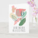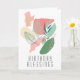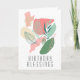 Envoyez des bénédictions d'anniversaire avec cette carte religieuse moderne, qui présente des formes et des feuilles abstraits en vert muet, corail, rose et bronze, et des "bénédictions d'anniversaire" en noir moderne. A l'intérieur, se trouve le populaire passage biblique Numéros 6:24-26 ""Le Seigneur vous bénisse et vous garde; Le Seigneur vous fait briller le visage, et soyez courtois envers vous; Le Seigneur lève Son visage sur vous, et vous donne la paix." en caractères coralliens, qui peuvent être modifiés.