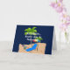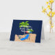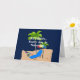 Palmiers et chaise lounge, "Retraité...Chaque jour est samedi" bouton.