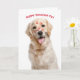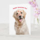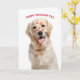 Chien retriever doré avec des baisers de rouge à lèvres rouge sur fond blanc.