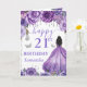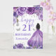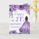 Magnifique Aquarelle peau foncée princesse aux cheveux noirs en Robe violette design avec fleurs, tiara et parties scintillant argent