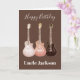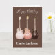 Pour votre oncle rockstar cool, qu’il soit guitariste avec une compétence exceptionnelle ou guitariste aérien, c’est la carte pour lui. illustrations rustiques de style campagnard cool de trois guitares semi-acoustiques dans des tons légèrement translucides de blanc, brun clair et brun foncé sur un arrière - plan d'argile muet. On peut customiser les mots "heureux anniversaire" et ajouter le nom de vos oncles en utilisant le modèle pour créer une carte personnalisée pour votre oncle amoureux de la musique lors de sa Journée spéciale. Oeuvre originale créée par l'artiste Catherine Sweetman