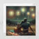 Un doux moment romantique d'un couple des années 1950 assis sur une couverture de drapeau américain regardant le feu d'artifice le 4 juillet. Nostalgique des années 50.