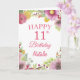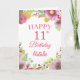 Carte rose 11th Birthday Watercolor Floral Flowers avec nom et âge personnalisés. Pour plus de personnalisation, cliquez sur le bouton "Customiser" et utilisez notre outil de conception pour modifier ce modèle.