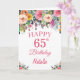 65e Anniversaire Floral Flowers Carte rose avec nom et âge personnalisés. Pour plus de personnalisation, cliquez sur le bouton "Customiser" et utilisez notre outil de conception pour modifier ce modèle.