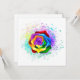Grand rose fleuri avec pétales arc-en-ciel sur arrière - plan blanc, peint sur des éclaboussures de peinture colorée et lumineuse. 3d