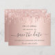 Une petite fille et tendance Enregistrer la carte Date pour une fête d'anniversaire de 40e (ou tout âge). Arrière - plan rose rose féminine décorée de gouttes d'or rose. Personnalisez et ajoutez une date et un nom/âge 40. Lettres de couleur or rose foncé. Le texte : Save the Date est écrit avec un grand script de style à la main tendance.