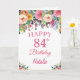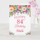 84e anniversaire Watercolor Floral Flowers Pink Card avec nom et âge personnalisés.