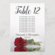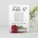 Ces belles cartes de numéro de table faciliteront la recherche de sièges à votre réception de mariage. Elles présentent un design simple mais élégant avec des lettres de calligraphie script et une seule rose rouge à long tige allongée sur son côté réfléchissant dans l'eau. La carte comprend un tableau de sièges avec 10 noms. Il y a aussi de la place pour les noms du couple et la date du mariage. Cette carte est disponible dans une variété de tailles et est plus grande que nos cartes de numéro de table standard.