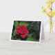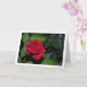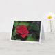 Carte de vœux avec une rose rouge simple et des feuilles vertes. Vous pouvez facilement personnaliser ce produit gratuitement si vous souhaitez ajouter du texte ou changer la couleur de l'arrière-plan.