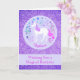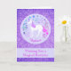 Cette carte d'anniversaire présente un joli dessin de licorne avec une parties scintillant faux violet. Vous pouvez personnaliser l'avant de la carte avec un nom et le texte à l'intérieur.