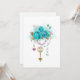Clé d'or antique aux roses turquoise tendance décorée de feuilles d'or blanc et de perles rose et bleu. Couleur tendance. Rose turquoise. Blanc doré. Tiffany bleu.