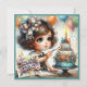 Une jolie fille décorant un gâteau d'anniversaire, célébrant l'anniversaire de Roslyn. Les salutations sur la carte sont "Joyeux Anniversaire Roslyn". Sur le dos de la carte se trouve une petite version de l'image avant, et beaucoup de place pour écrire un message. Fabriqué avec l'aide d'AI Bing.
