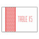 Chic et moderne Chevron Border Table Numéro Card avec une simple bordure motif chevron en rouge et blanc. Ce design élégant donnera le ton à un mariage élégant. Facile à customiser, il suffit d'ajouter le ou les numéros de table appropriés dans le champ de texte fourni. Cliquez sur "Customiser" pour trouver d'autres options de personnalisation.