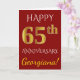 Carte Rouge, Faux Or 65e Anniversaire de Mariage + Nom