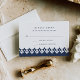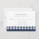 Conçu pour coordonner avec nos mariages arabesques et nos invitations d'évènements, cette carte de réponse élégante en bleu marine et blanc classique dispose d'une bordure de fond géométrique d'inspiration marocaine. Ajoutez votre date RSVP et le texte de réponse dans la marine correspondante