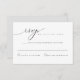 Cette carte RSVP de réponse mariage dispose d'une police de script de calligraphie élégante et d'un design minimaliste moderne. C'est la carte RSVP parfaite pour votre suite de mariage contemporain ou industriel. *La plupart* des mots est modifiable et cette carte de réponse peut être utilisée pour n'importe quelle occasion. Utilisation facile pour votre douche nuptiale, baby shower, fête de retraite, etc.