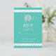 Cette carte RSVP Baby shower Pois Baby Elephant est parfaite pour un baby shower ou une aspersion sur le thème de la jungle, sans distinction de genre. Le design comprend un éléphant gris et turquoise avec des bordures de pois turquoises sur un arrière - plan turquoise, et une calligraphie branchée.